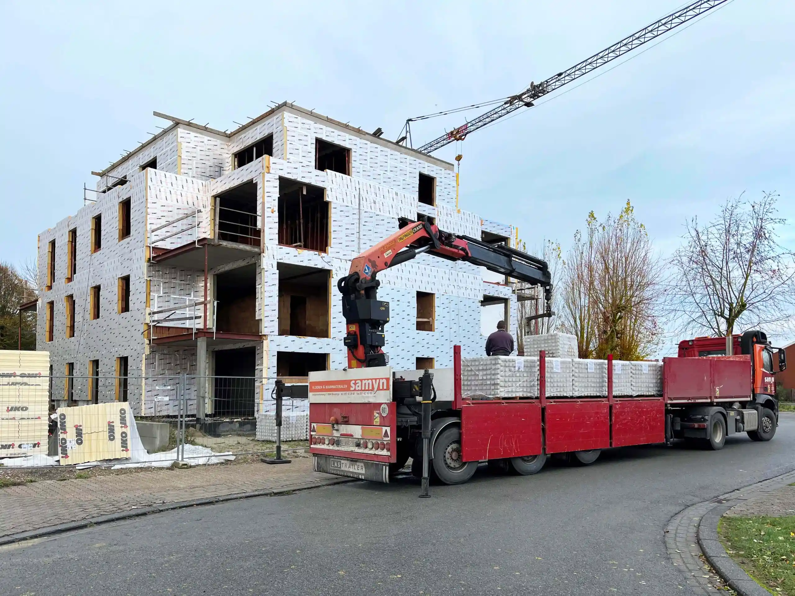 Bouwhandel Samyn, basé à Boezinge, est l'un des premiers à fournir ces matériaux de construction durables sur le chantier. Les briques de façade sont posées de manière professionnelle par l'entrepreneur Vancoillie – Tanghe, basé à Westrozebeke.